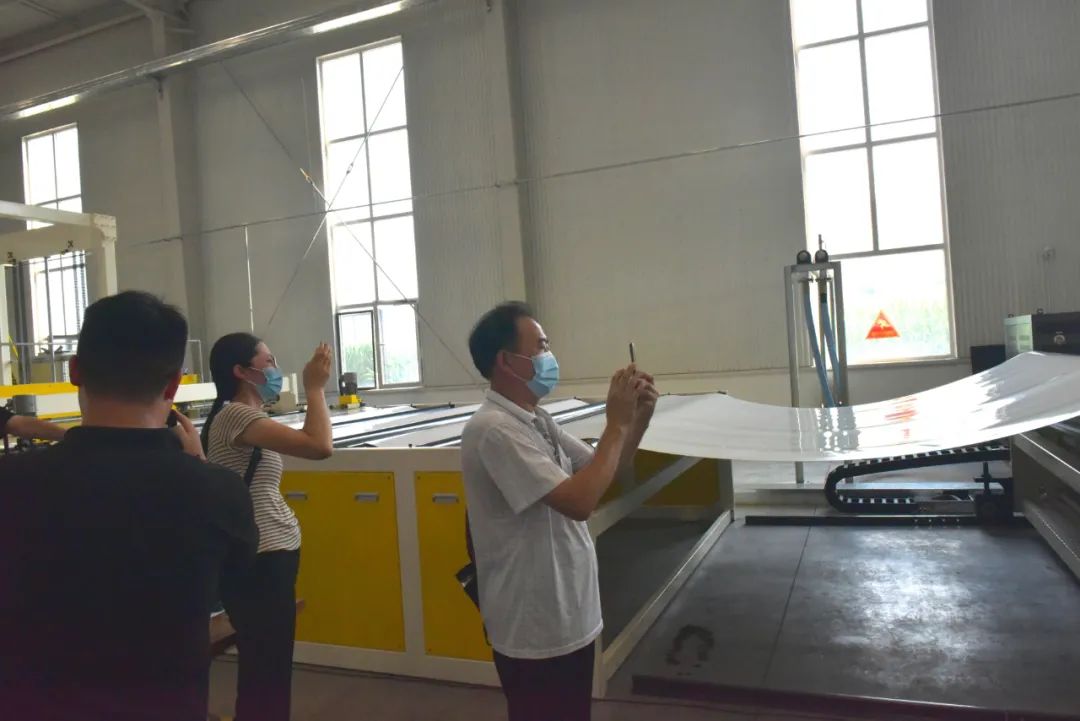 會前,專家領(lǐng)導(dǎo)們一行參觀了公司的展廳和生產(chǎn)車間,并對企業(yè)發(fā)展歷程、聚丙烯長絲土工布、TPO復(fù)合防水卷材的材料屬性、材料尺寸、抗拉強度、撕裂強度、抗穿刺強度等物理、化學(xué)性能等維度進(jìn)行了詳細(xì)了解,對晶創(chuàng)新材料的高效率生產(chǎn)和制造工藝水平,高品質(zhì)的質(zhì)量管理、全方位服務(wù)給予了較高肯定和贊許。